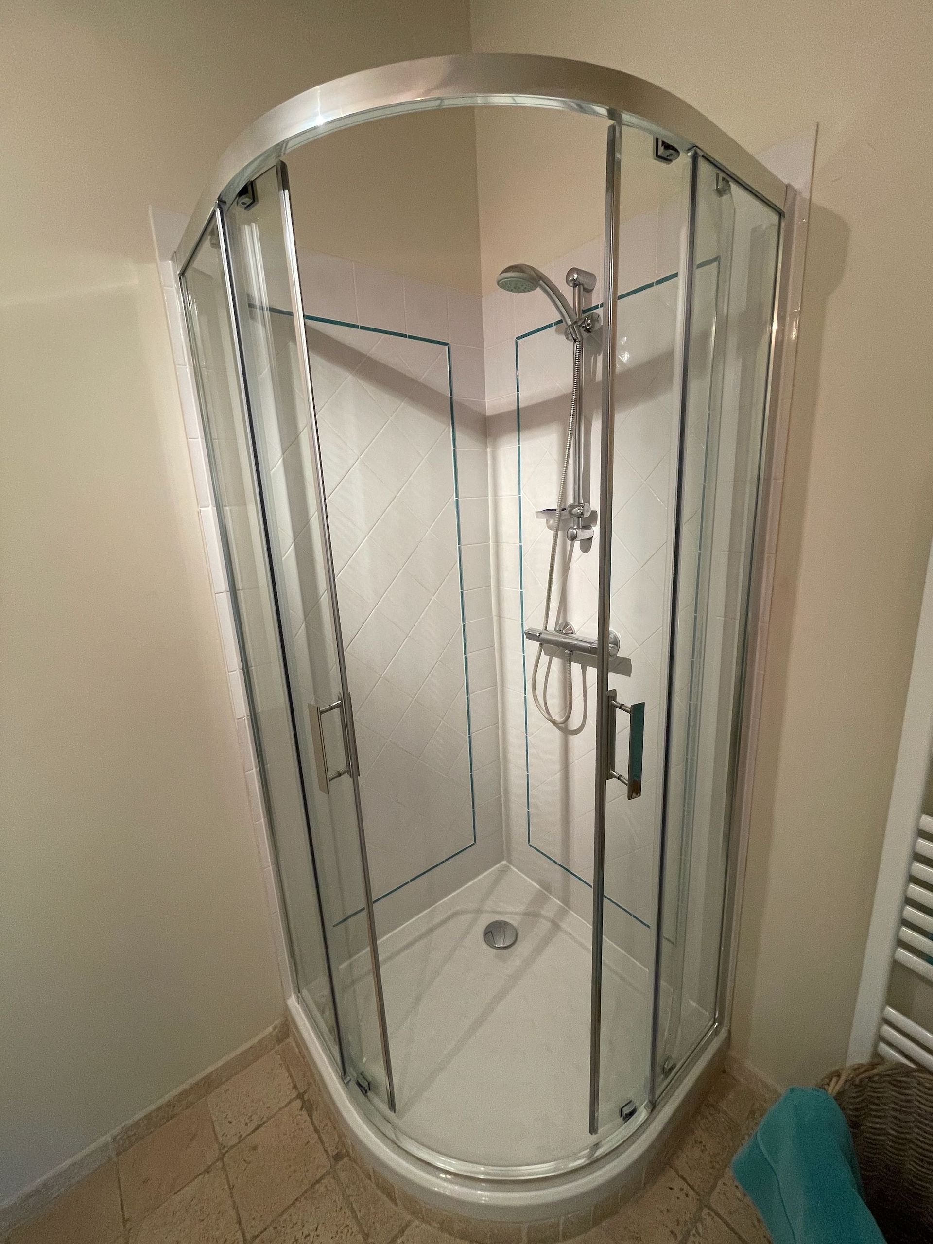 Three bedrooms 1 with 160cm bed and en-suite shower room.1 with 160cm bed, 1 with twin single beds (90cm). Sleeps 6 plus baby. Cot and highchair provided on request. Two hairdryers.