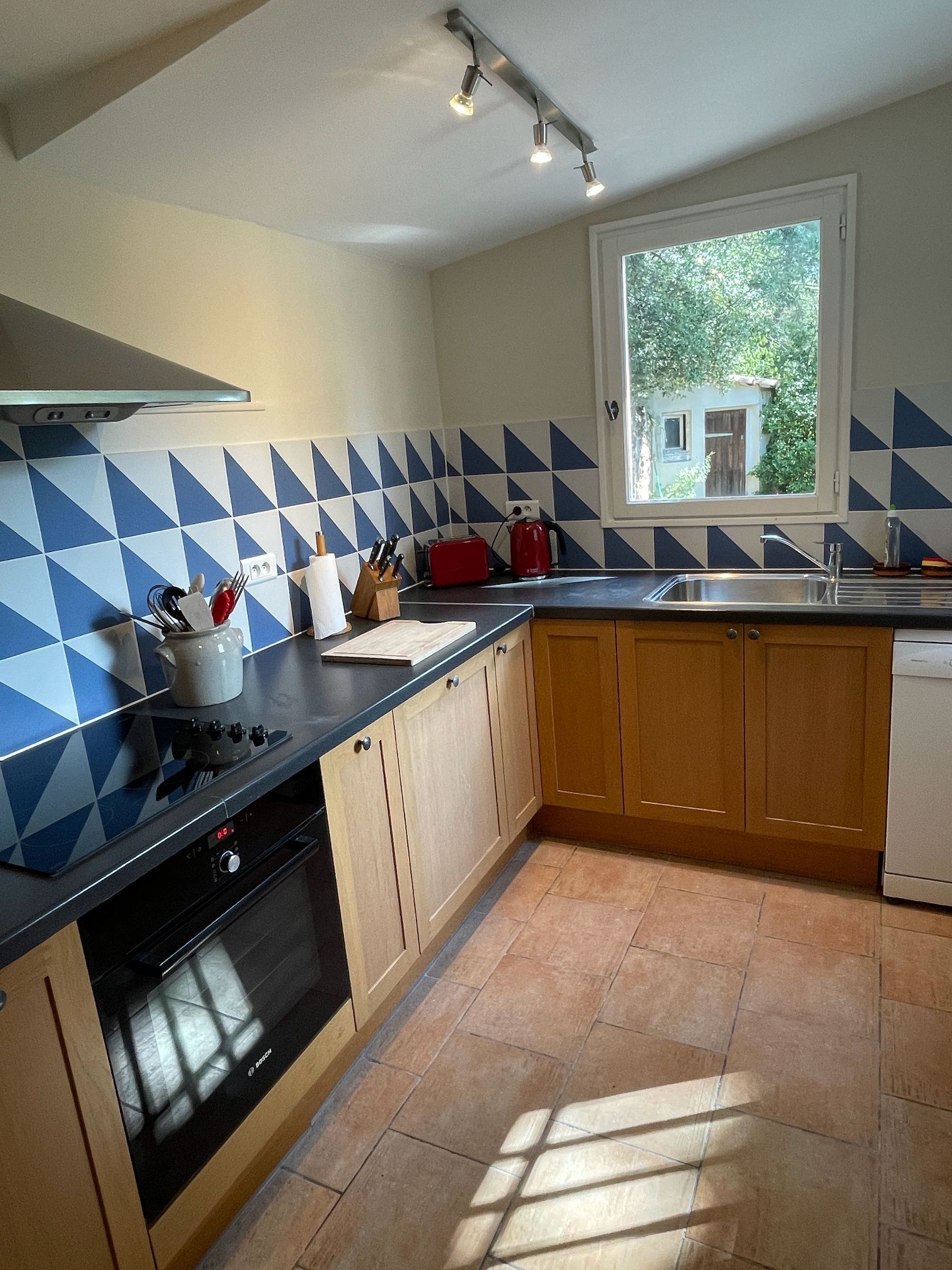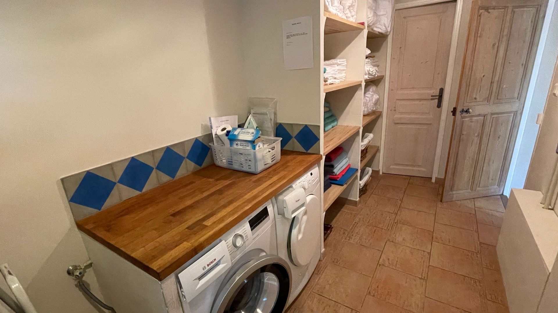 Kitchen Modern well-equipped kitchen with electric oven, hob, micro-wave, dishwasher and fridge freezer. Separate laundry room with washing machine and tumble dryer. Iron and ironing board.